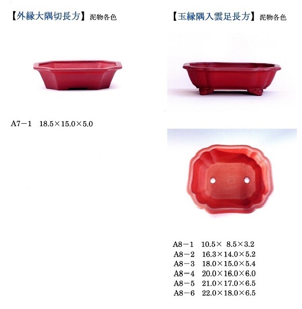 下記雲足長方のサイズ順一覧は