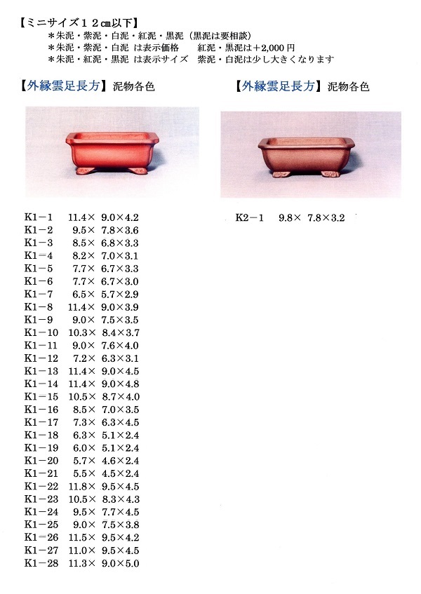 下記雲足長方のサイズ順一覧は