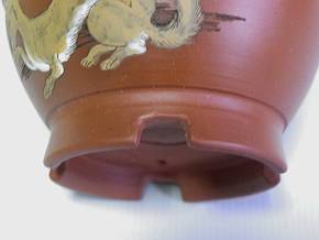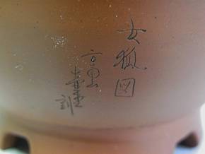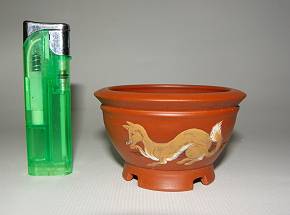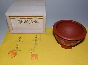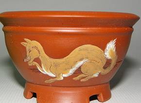 朱泥女狐図泥彩丸鉢