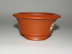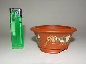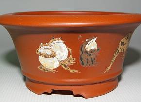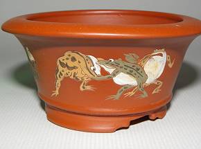 朱泥蛙戯図泥彩丸鉢
