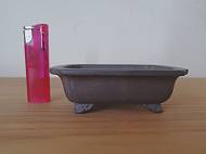 朱泥外縁雲足長方鉢 (共布、桐箱付き)
