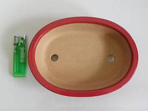 珊瑚釉雲足楕円