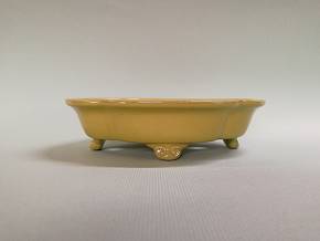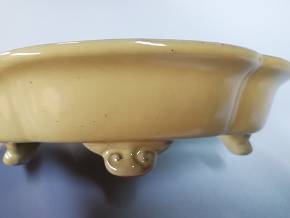黄均釉雲足木瓜鉢 裏薬