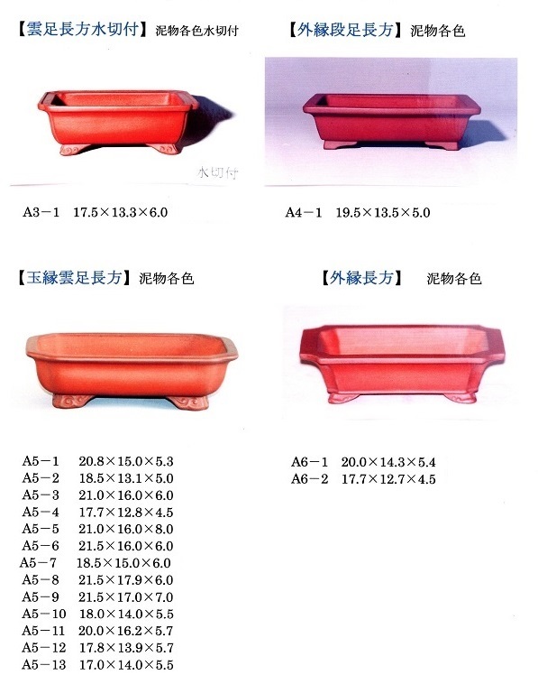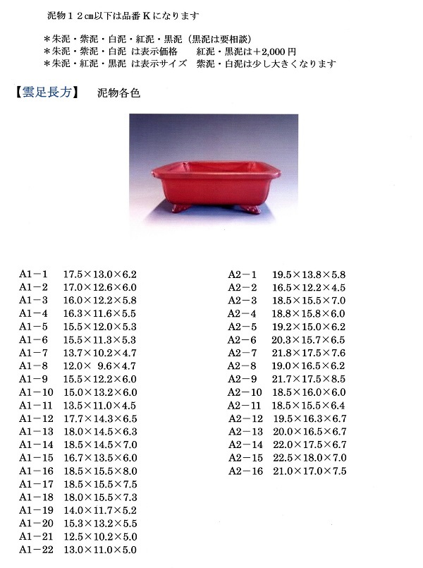 下記雲足長方のサイズ順一覧は